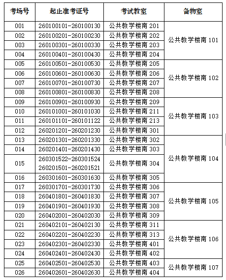 一、考场分布及考试时间